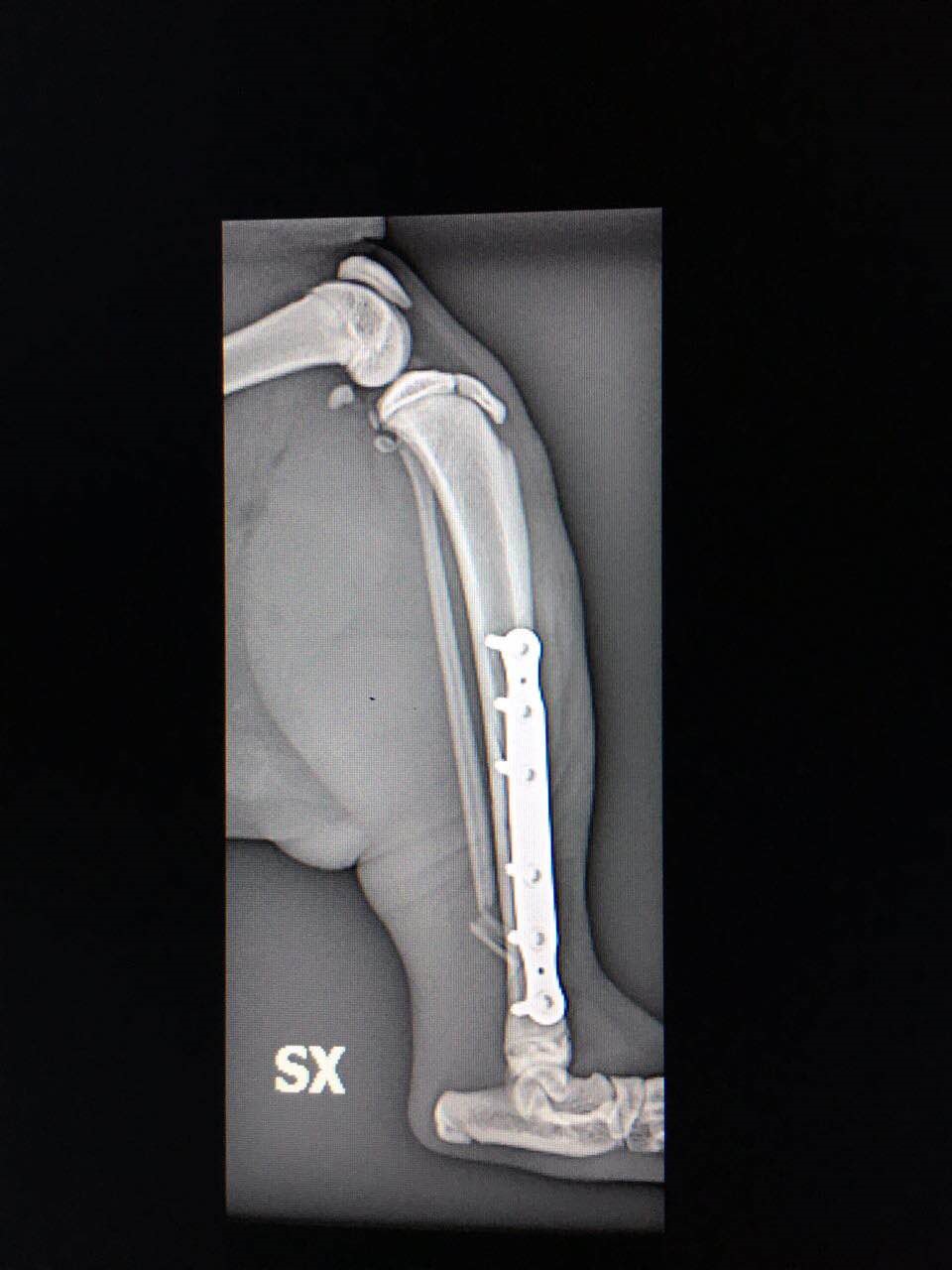 Inoltre, la scelta di mezzi di sintesi di ultima generazione come le Placche a Stabilità Angolare o i Fissatori Esterni Radio Trasparenti per i cani di taglia “toy”, permettono il miglior confort possibile per l’animale consentendone una guarigione e recupero della funzione motoria in tempi molto brevi.